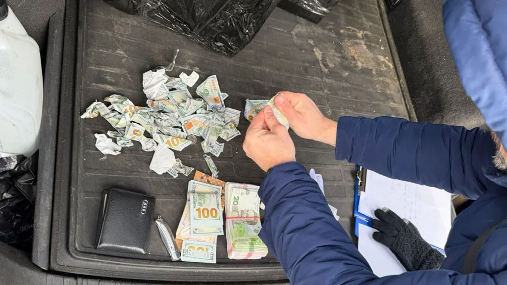 41-річного чоловіка затримали під час передачі частини обумовленої суми неправомірної вигоди в порядку ст. 208 Кримінального процесуального кодексу України. Під час затримання у нього вилучили 1 800 доларів США, які він намагався знищити.