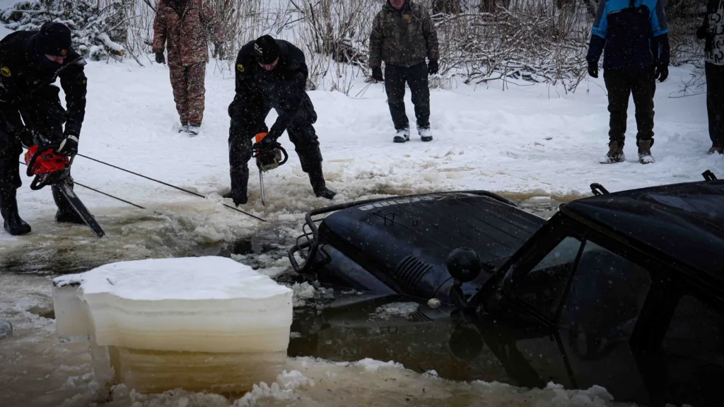За допомогою підводного дрона з’ясовано, що транспортний засіб знаходився на глибині понад чотири метри. Через значну товщину криги рятувальники розрізали лід метр за метром. Роботу ускладнювала майже нульова видимість через товстий шар мулу — водолази фактично працювали навпомацки.