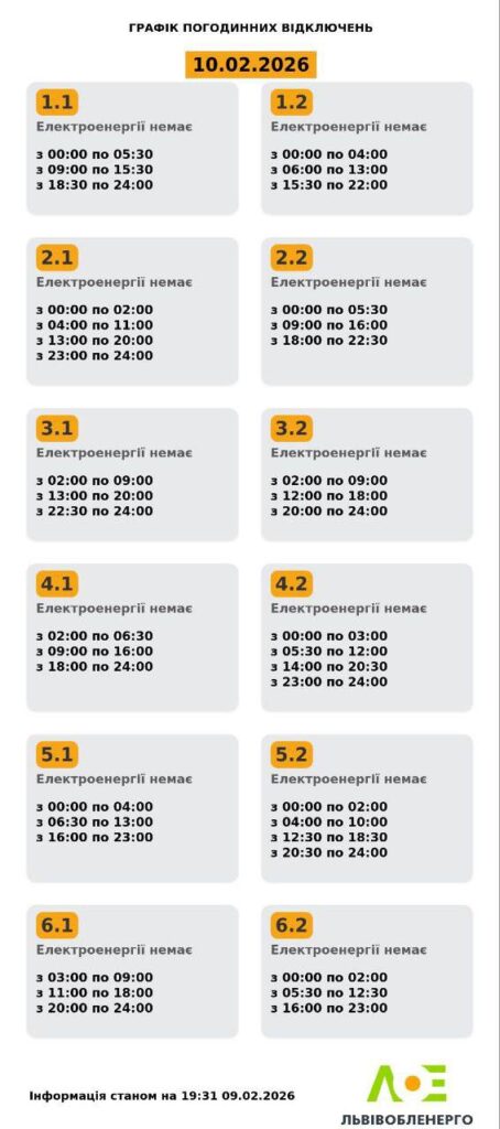 У Львові та населених пунктах області на завтра запроваджують тривалі погодинні відключення електроенергії. Деякі споживачі можуть залишатися без світла майже 18 годин на добу.