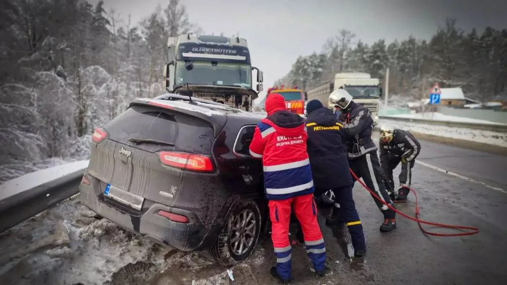На Київщині, поблизу села Поташня Бородянської територіальної громади сталася дорожньо-транспортна пригода за участю легкового автомобіля Jeep та вантажівки Volvo.