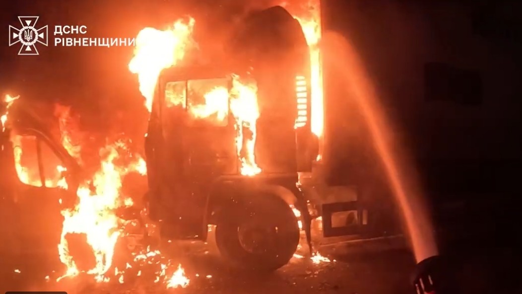 На Рівненщині вночі згоріли два автомобілі: полум’я охопило вантажівку і мікроавтобус