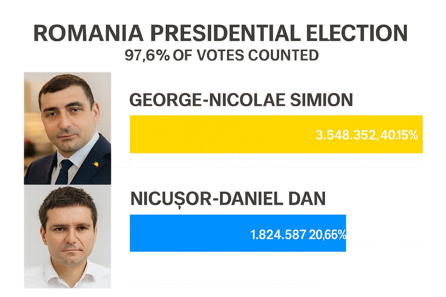Президентські вибори в Румунії 2025: Підрахунок завершено – Джордж Сіміон і Нікушор Ден виходять у другий тур