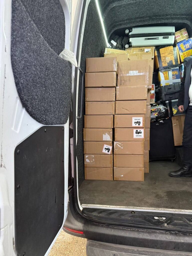 Під час огляду транспортного засобу, який прибув з Англії під керуванням громадянина України, митники виявили 70 ящиків електронних сигарет загальною кількістю 14 тис. штук та вагою понад 500 кг. Орієнтовна вартість товару перевищує 5 млн грн.