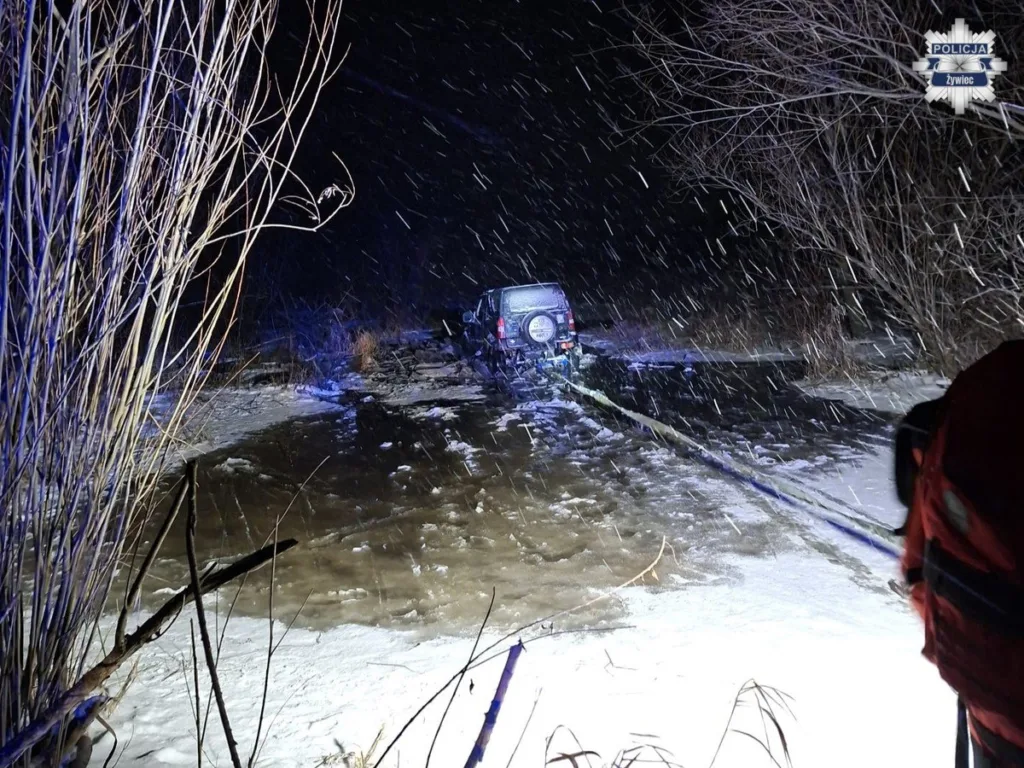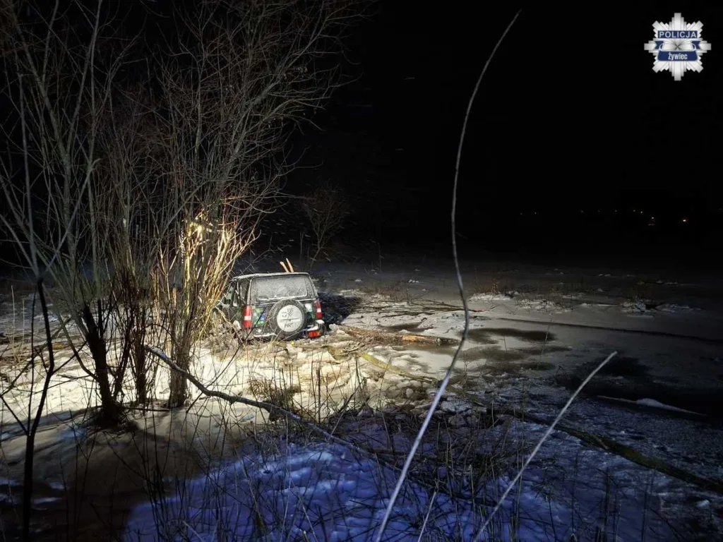У Сілезькому воєводстві Польщі на замерзлому озері Живець автомобіль частково пішов під воду після того, як лід не витримав ваги транспортного засобу.