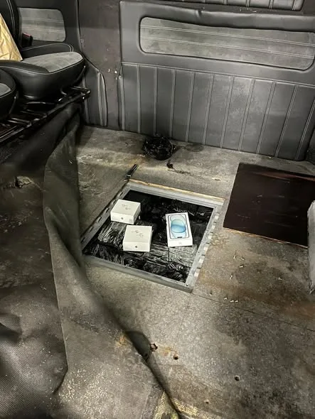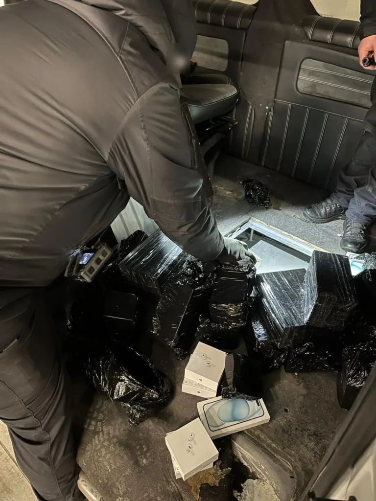 Під час детального огляду прикордонникам довелося частково демонтувати конструктивні елементи автомобіля. У спеціально облаштованому тайнику в днищі мікроавтобуса було виявлено 829 одиниць техніки Apple — смартфони iPhone 15, 16 та 17 різних модифікацій, смартгодинники й бездротові навушники.