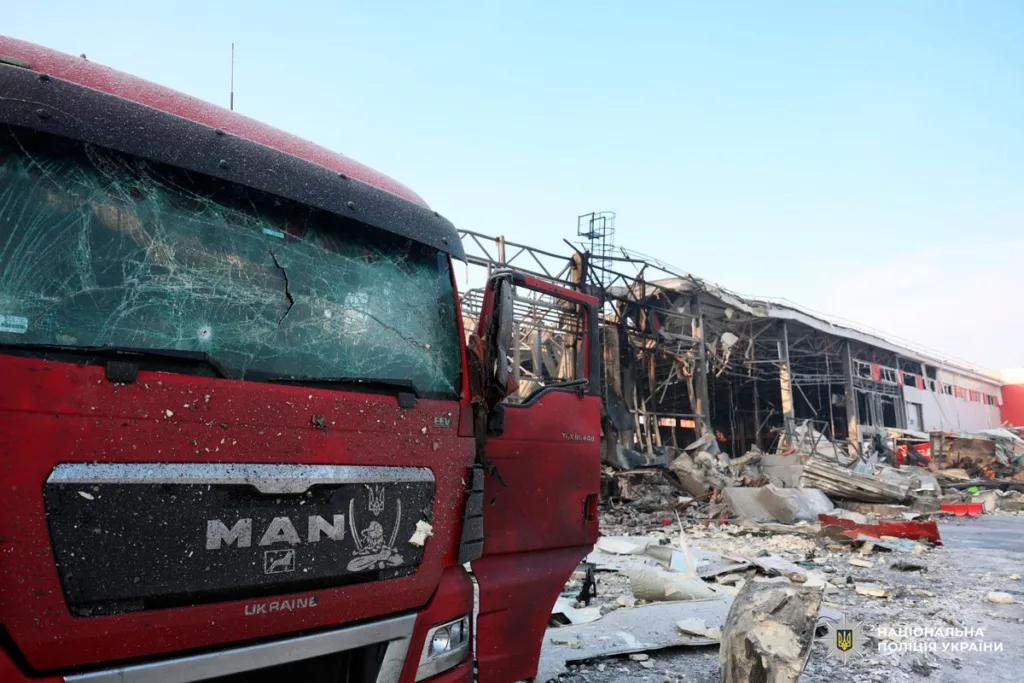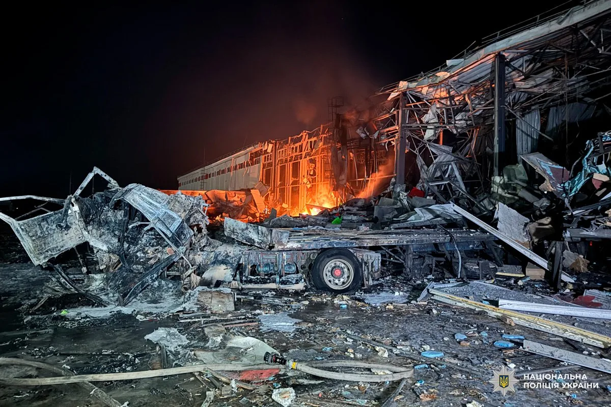 У місті Дергачі внаслідок влучання безпілотника в землю пошкоджено автозаправну станцію. У селищі Роганська Лозова зафіксовано влучання у приватні будинки.